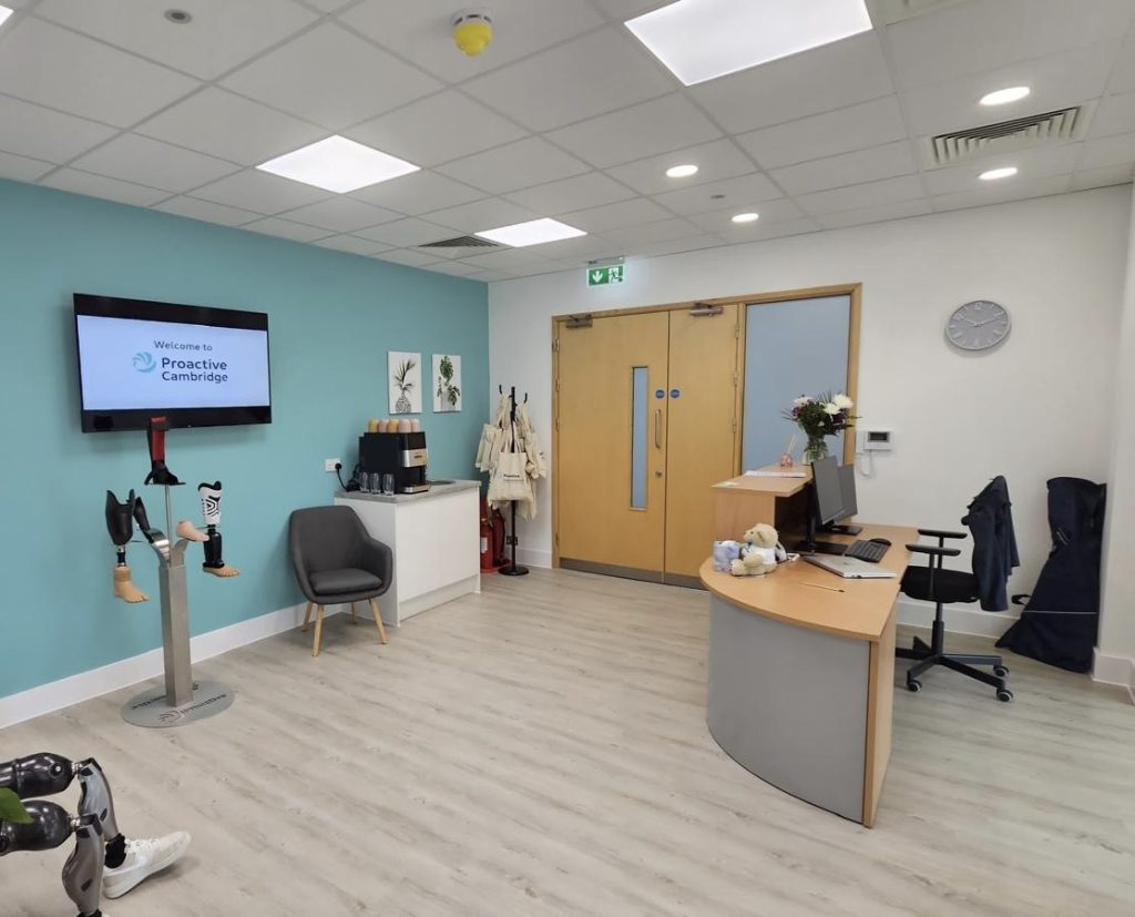Opened in 2025, the Cambridge clinic represents an exciting new chapter for Proactive, bringing private prosthetic and orthotic services to an area that has historically been underserved. Led by an experienced multidisciplinary team, the clinic delivers personalised prosthetic, orthotic and rehabilitation care shaped around each individual’s goals and progress.